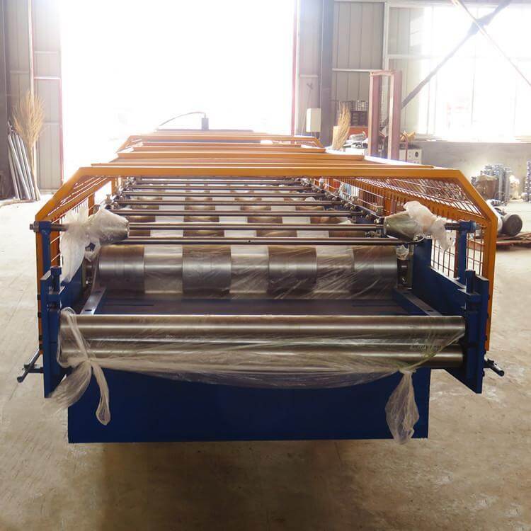 電剪切840壓瓦機前的調試應用先把彩鋼壓瓦機設備機前、后兩排隊的四角從大架到底軸上端的高度量一致,然后從排到后一排,找一根線拉直,檢查一下,下軸是否在一條直線上,把下軸左、右兩邊調成水平。把彩鋼瓦設備排和后一排找好中心,然后緊固兩邊鎖母,在中間輪的正中心前、后拉好一條直線,把上、下軸的間隙調整好后,就可順著直線調整機器。