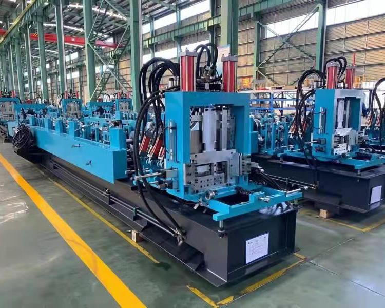 無極變速C型鋼機由裝料架、調(diào)整系統(tǒng)、成型系統(tǒng)、校正系統(tǒng)、電腦控制系統(tǒng)、液壓系統(tǒng)、沖孔、剪切系統(tǒng)組成,無極切斷C型鋼結(jié)構(gòu)設(shè)備所生產(chǎn)的產(chǎn)品廣泛應(yīng)用于鋼結(jié)構(gòu)標準廠房及各種簡易棚等場合。