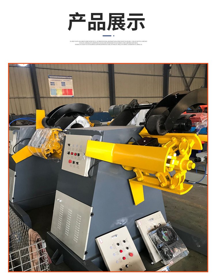 數控液壓開卷機是金屬板材校平的設備,用于校平線鋼板、不平整板可根據相關配置組成開卷、校平、剪切生產線和其它板材制品生產線。適用于機械、車輛、金屬制品家用電器、鋼構、裝飾等行業。