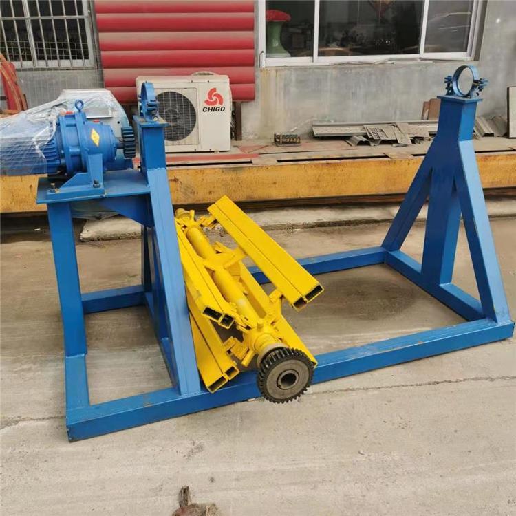 電動漲緊式上料支架承載能力大,使用壽命也較長。其特征在于:其包括機座,所述機座的兩端分別安裝有絲桿,一側的絲桿連接帶輪,所述兩邊的絲桿分別套裝連接套環,所述套環分別連接支架,所述支架分別通過兩側的側板鑲裝于所述機座的表面,所述支架分別通過轉軸連接錐形架,上料架架構造簡單,故障率低。