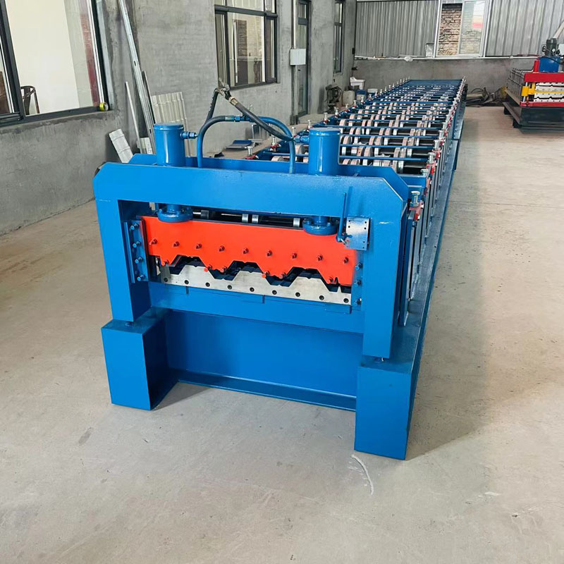915樓承板機生產的鋼樓承板形狀簡潔,波度大,,安裝時鋪置焊接鋼筋網后與混凝土觀場澆灌組合,粘合性好,在高層建筑上既可以省去鋼模板,又可以減輕樓層承載,在達到同等承受能力的前提出,使工程用鋼量減少,從而節省投資。